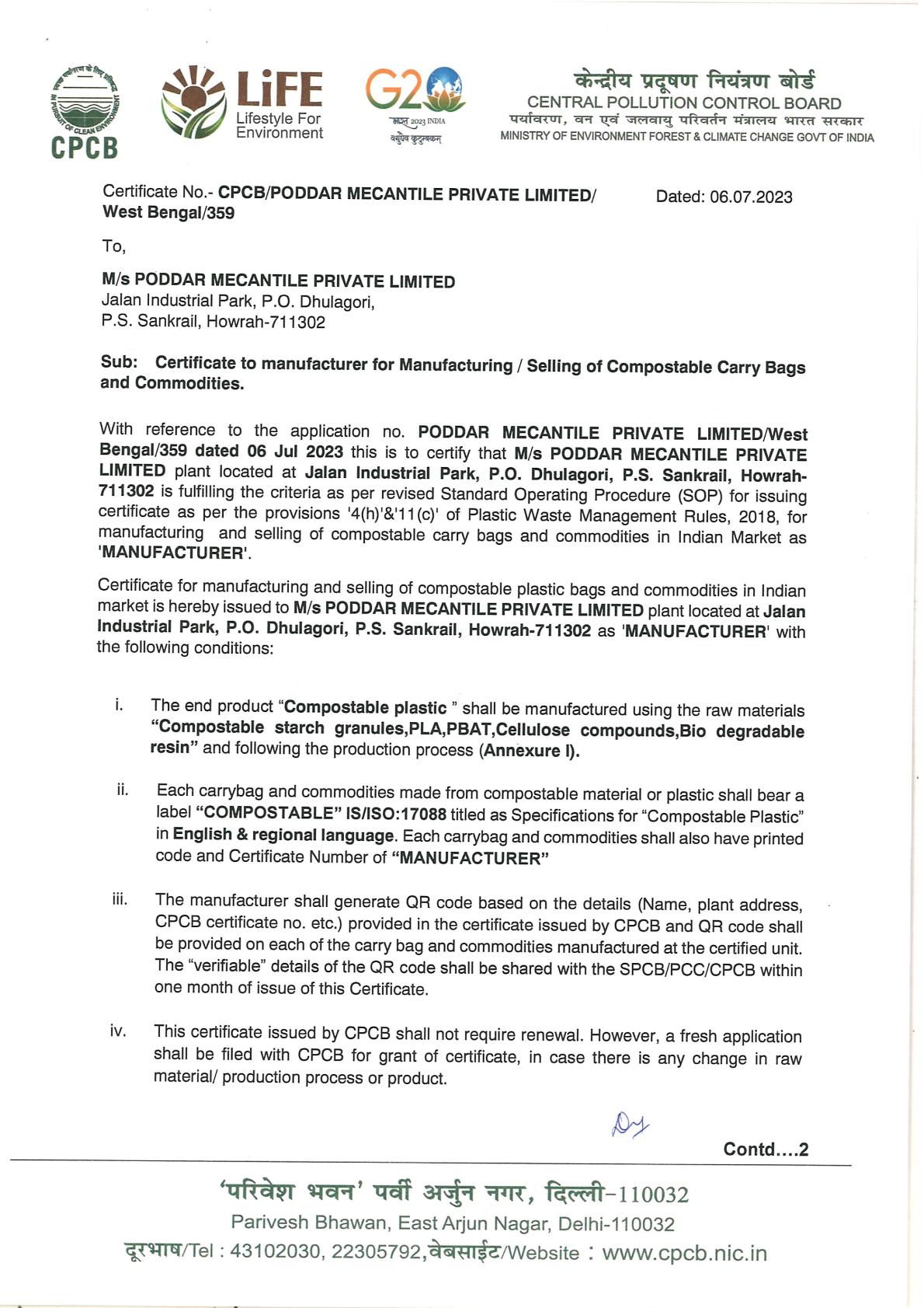 CPCB Compostable Certificate